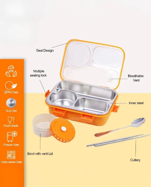 - Lunch box with soup bowl.Lunch box Comes with a separate soup bowl with lid,it is specially used for soup,and other compartments are individually sealed. If you don’t have soup for your lunch, you can take away the soup bowl.