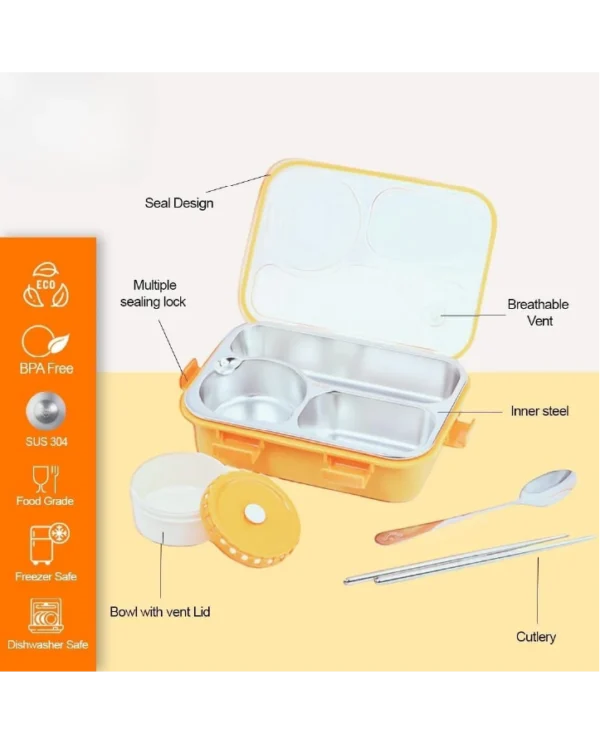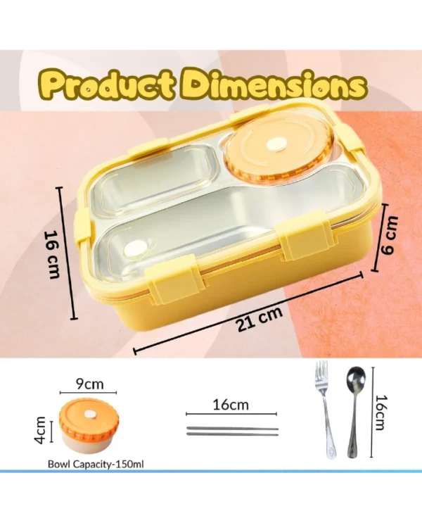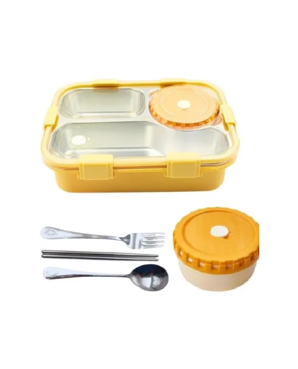 - Lunch box with soup bowl.Lunch box Comes with a separate soup bowl with lid,it is specially used for soup,and other compartments are individually sealed. If you don’t have soup for your lunch, you can take away the soup bowl.