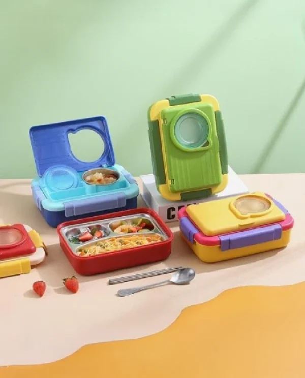 - 5 COMPARTMENTS WITH CUTLERY: The lunch box features five separate compartments, allowing for organized and diverse meal options. Keep your main course, sides, and snacks neatly separated also comes with 3-Piece Cutlery Set: Conveniently includes a set of three cutlery pieces, making it an all-in-one solution for a complete dining experience on the go.