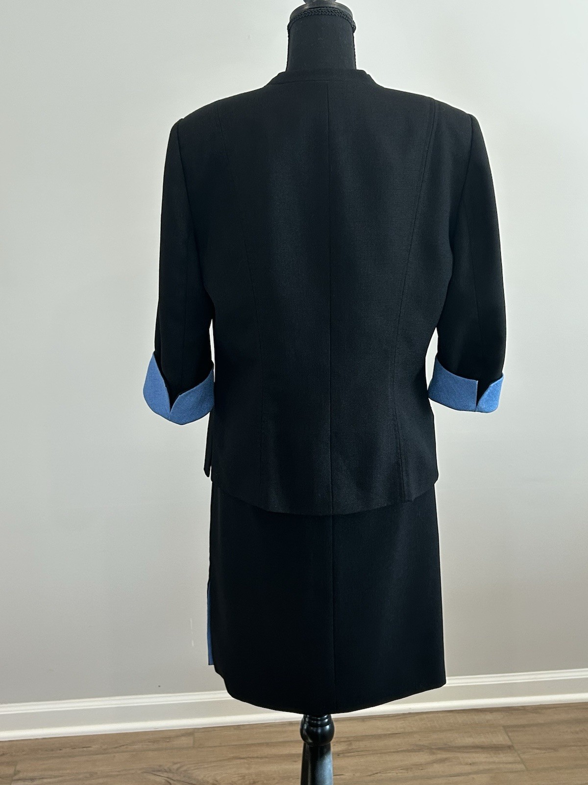 KASPER ASL 2Pc Skirt Suit Black/Blue Flip Cuffs Womens Size 12