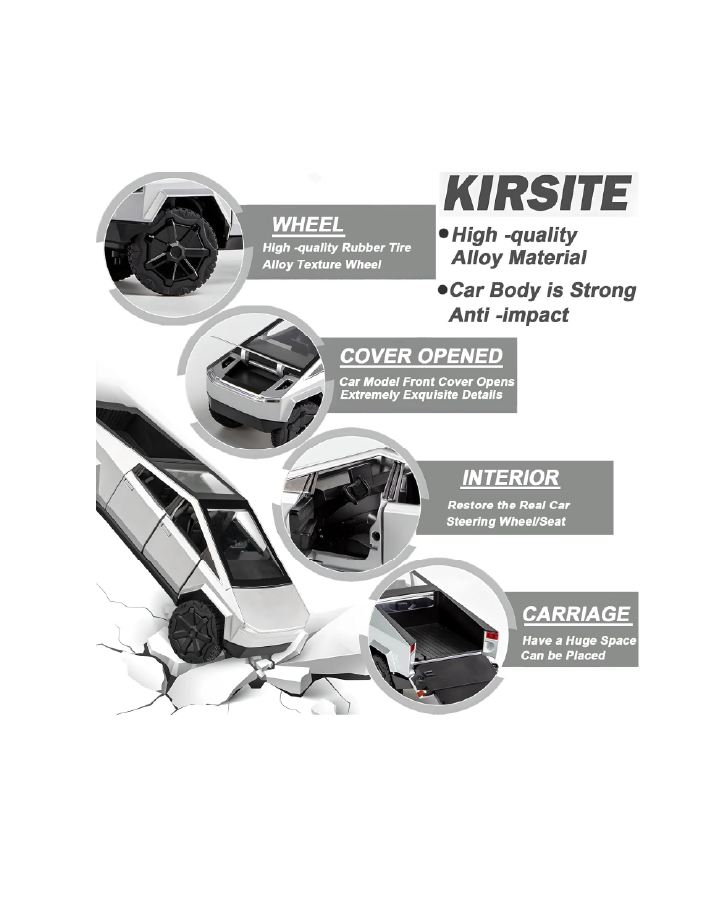 • Perfect Gift & Collectible – Stylish and sturdy Tesla Cybertruck die-cast toy car, ideal birthday or festival gift for boys aged 2+; also a great collectible display piece.